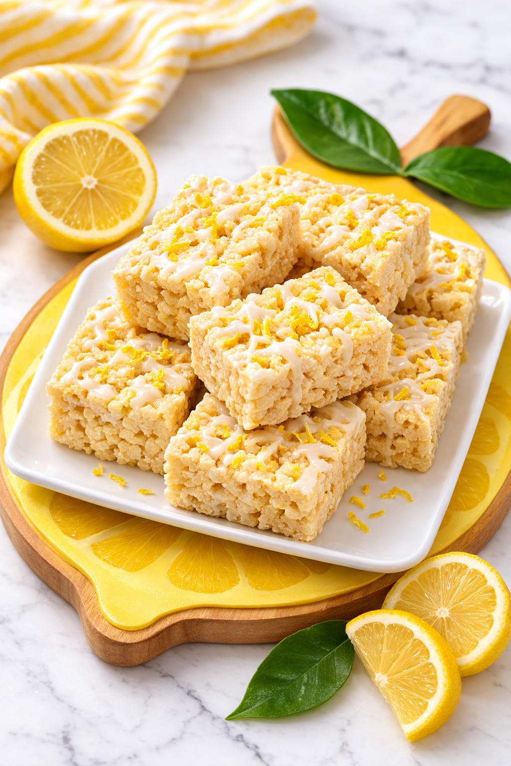 Easy Lemon Rice Krispie Treats are a bright no-bake lemon dessert perfect for spring gatherings and cozy kitchen baking. Fresh lemon juice and lemon zest add a simple citrus twist to these soft marshmallow cereal bars.